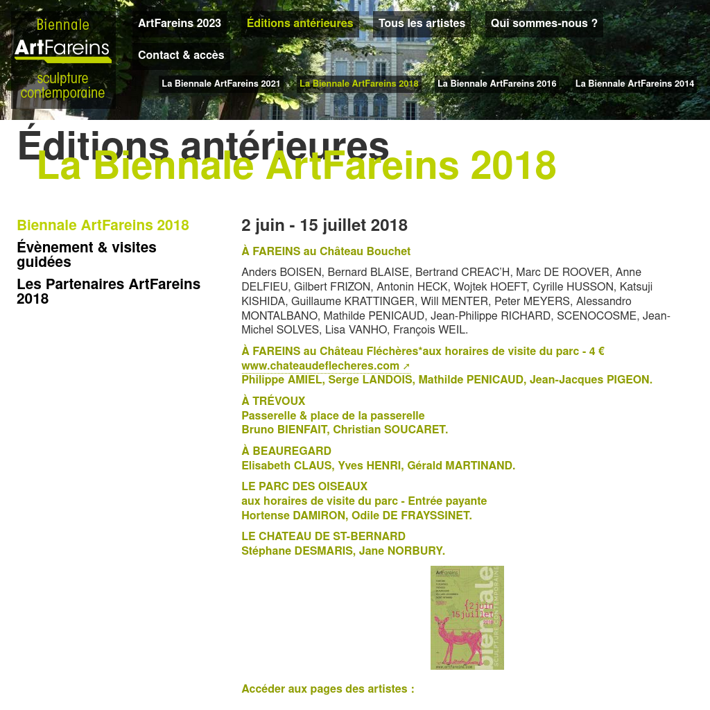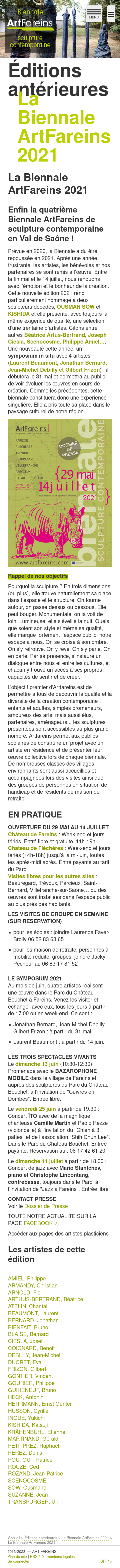De belles images mises en avant, présentation de l’édition en cours et des précédentes, tri des artistes par édition...