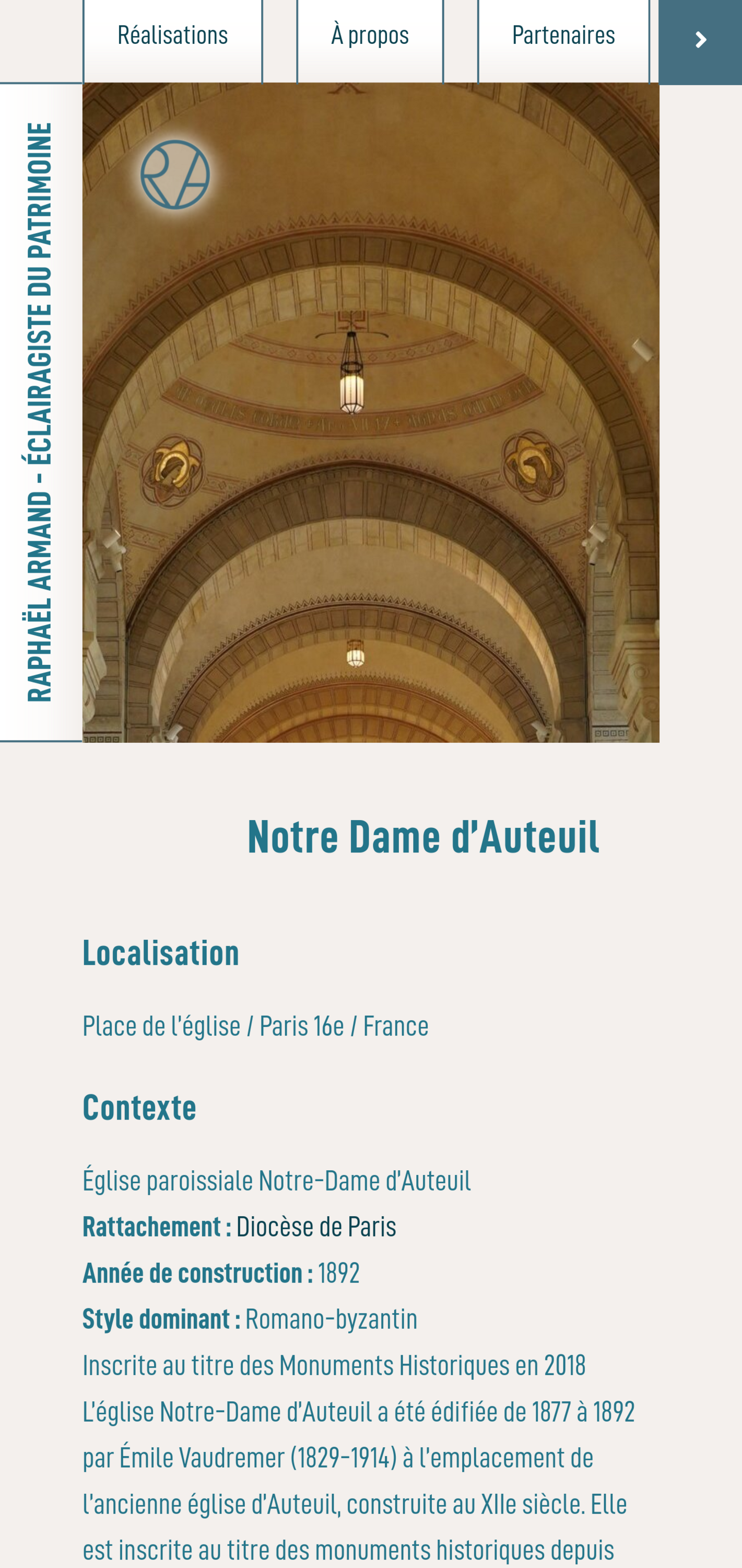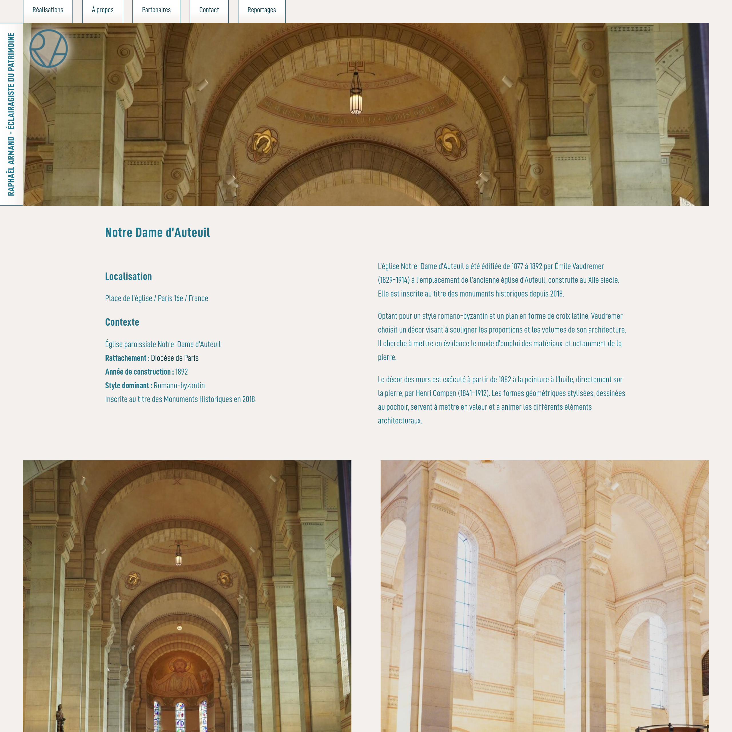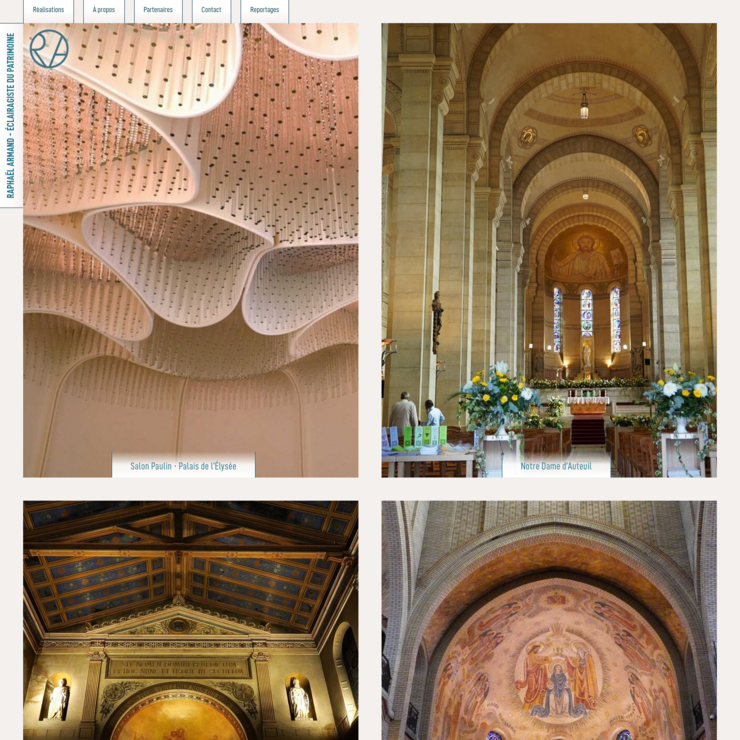 Les projets d’éclairage de Raphaël Armand répondent aux contraintes de rénovation et de modernisation de bâtiments classés ou d’intérêt historique : le salon Paulin de l’Élysée, la Villa Cavrois, des églises classées...